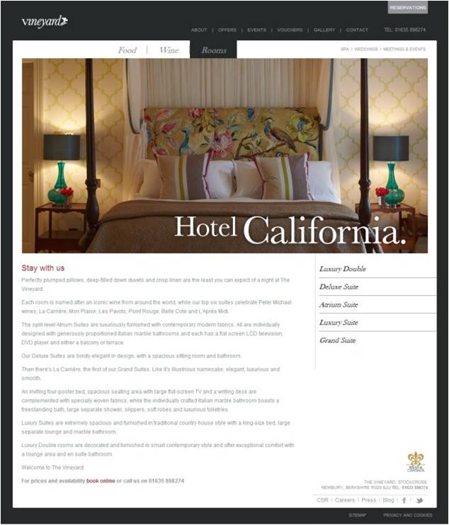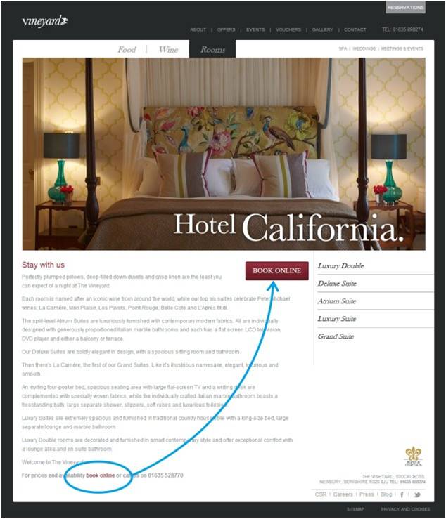 The Vineyard is a 5-star luxury hotel located in Central London. Their unique selling point (USP) can be seen on their awesome selection of food, luxurious accommodation, a large collection of fine wines and a collection of original art that adorn the walls. They hired a CRO company to improve their website’s conversion rate.